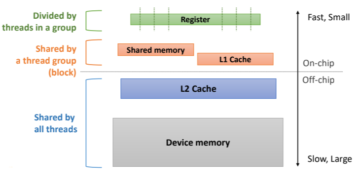 - On-chip memory(In each SM)