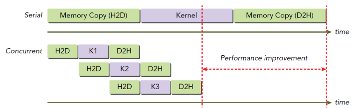 → 서로 다른 stream에 있는 작업 중 일부는 동시에 수행될 수 있다.