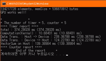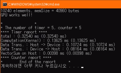 총 걸린 시간은 데이터를 복사하는 시간 때문에 아직 CPU 처리 과정보다 느리지만