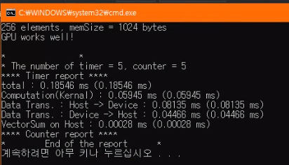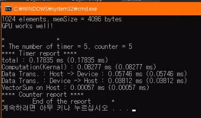 총 걸린 시간은 데이터를 복사하는 시간 때문에 아직 CPU 처리 과정보다 느리지만