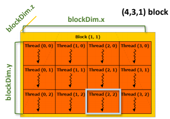 - blockDim.x * blockDim.y * blockDim.z = NUM_THREAD_IN_BLOCK