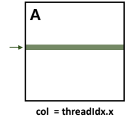 row = threadIdx.x라면 threadIdx.x의 값들은 col의 길이만큼 메모리 상에서 떨어져 있다.