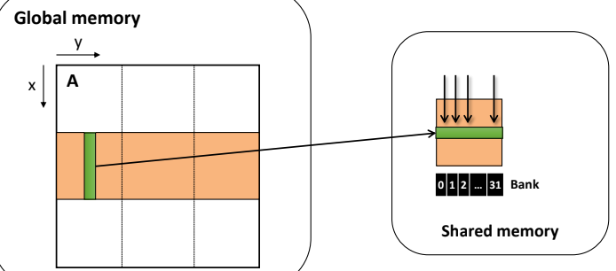 우리가 곱셈하고자 하는 것을 Shared memory로 보낼 때 그대로 올린다면